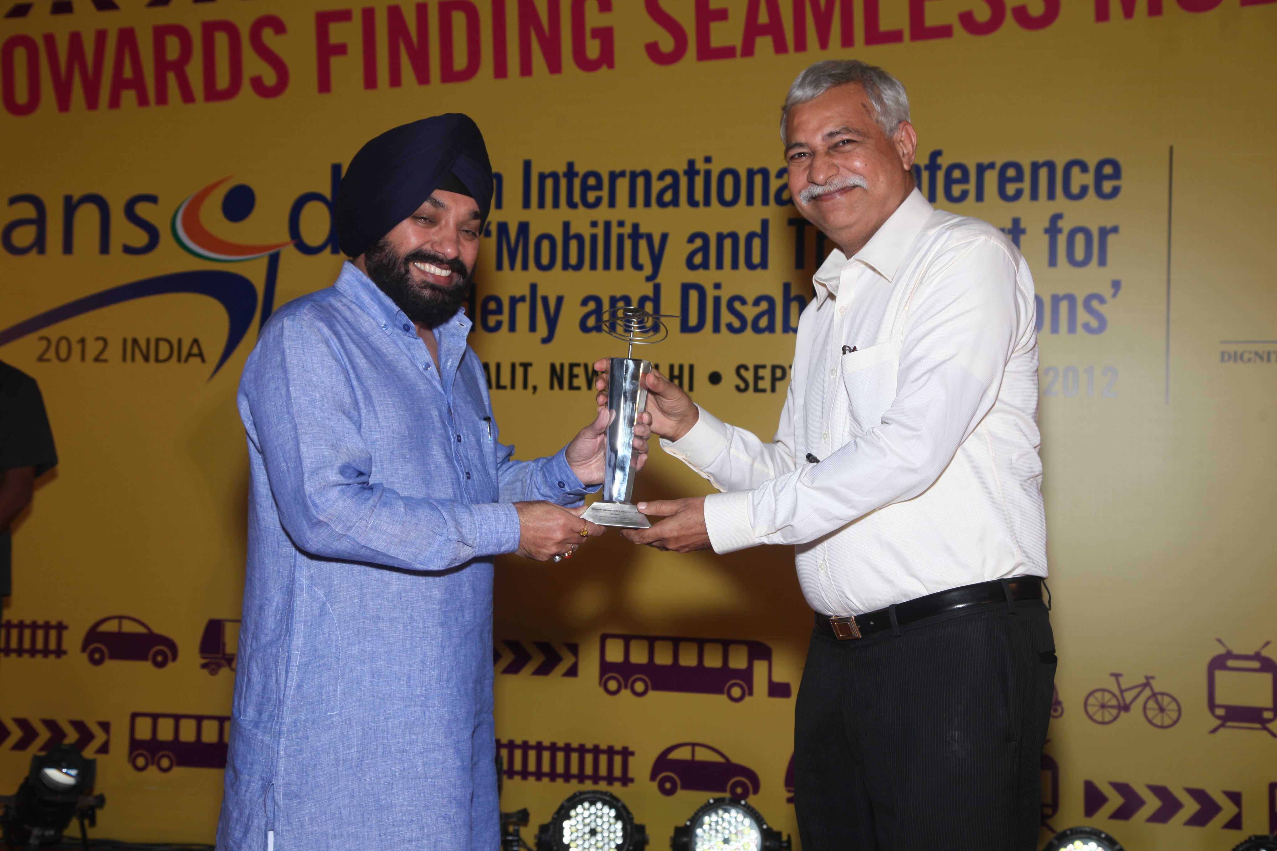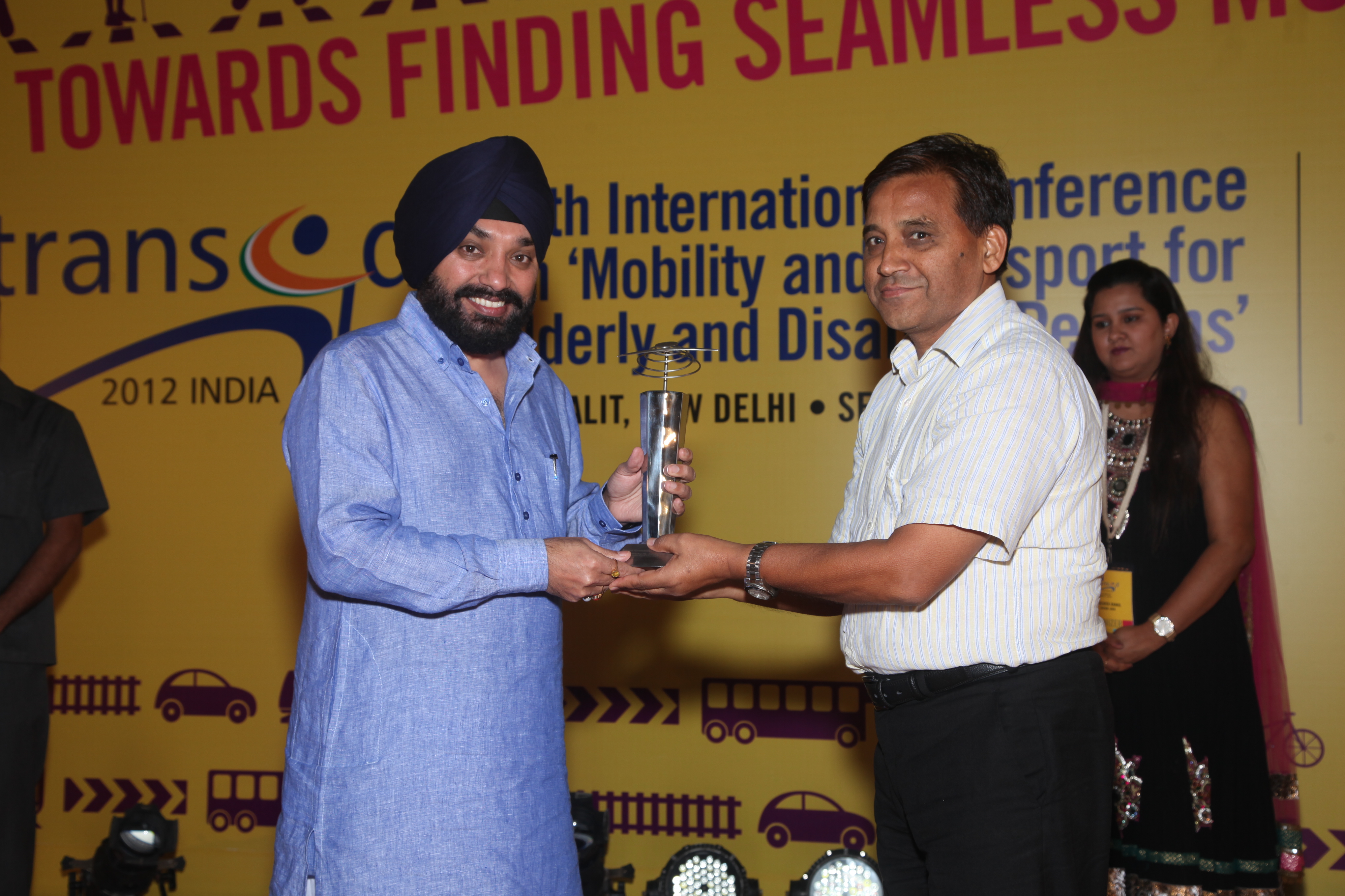 Most Accessible Public Transport: Delhi Transport Corporation (DTC) received the award for introduction of Low floor accessible buses – both ac and non-ac models and for a sensitized fleet of drivers and conductors. The award was received by Sh. R.K. Kasana, Chief General Manager, DTC .